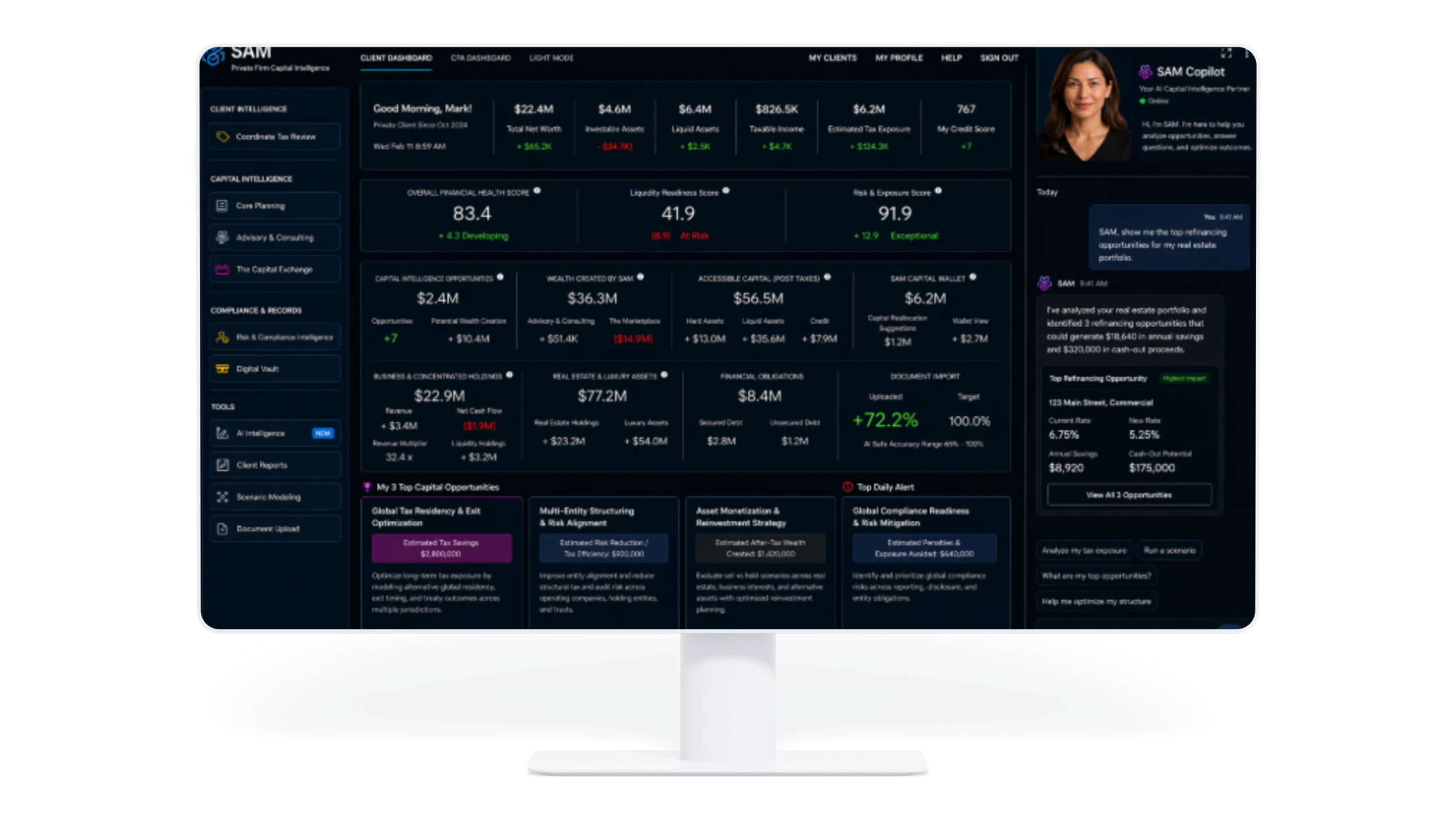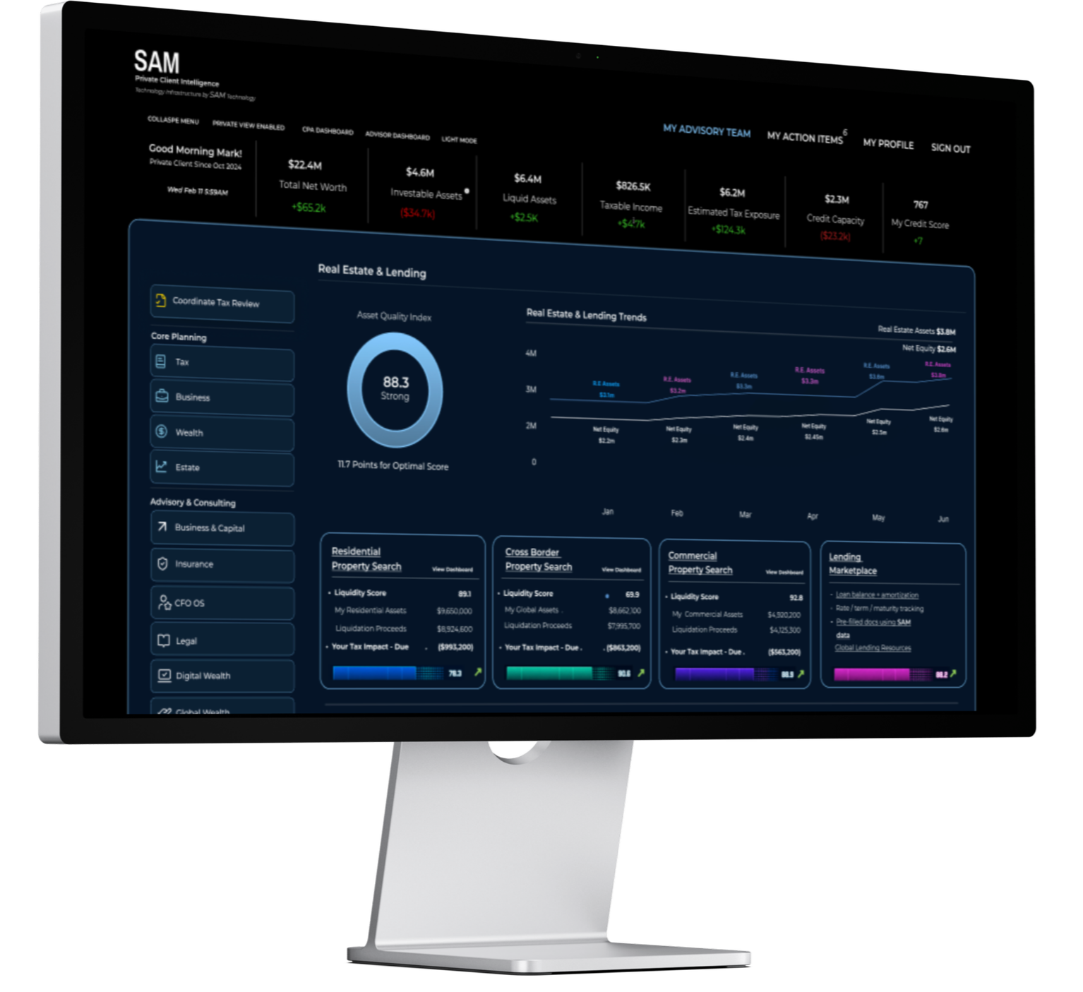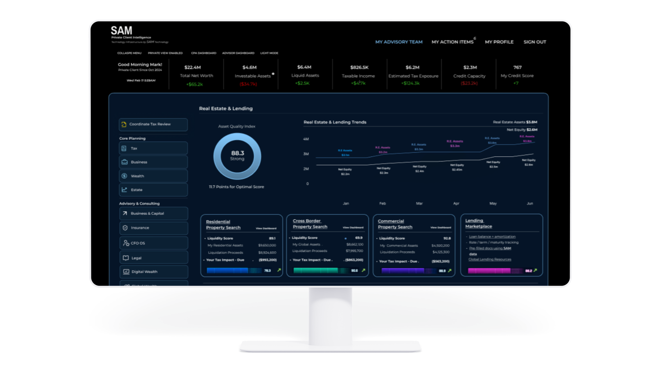 ✓ Unified intelligence across tax, wealth, lending, real estate, and alternative assets