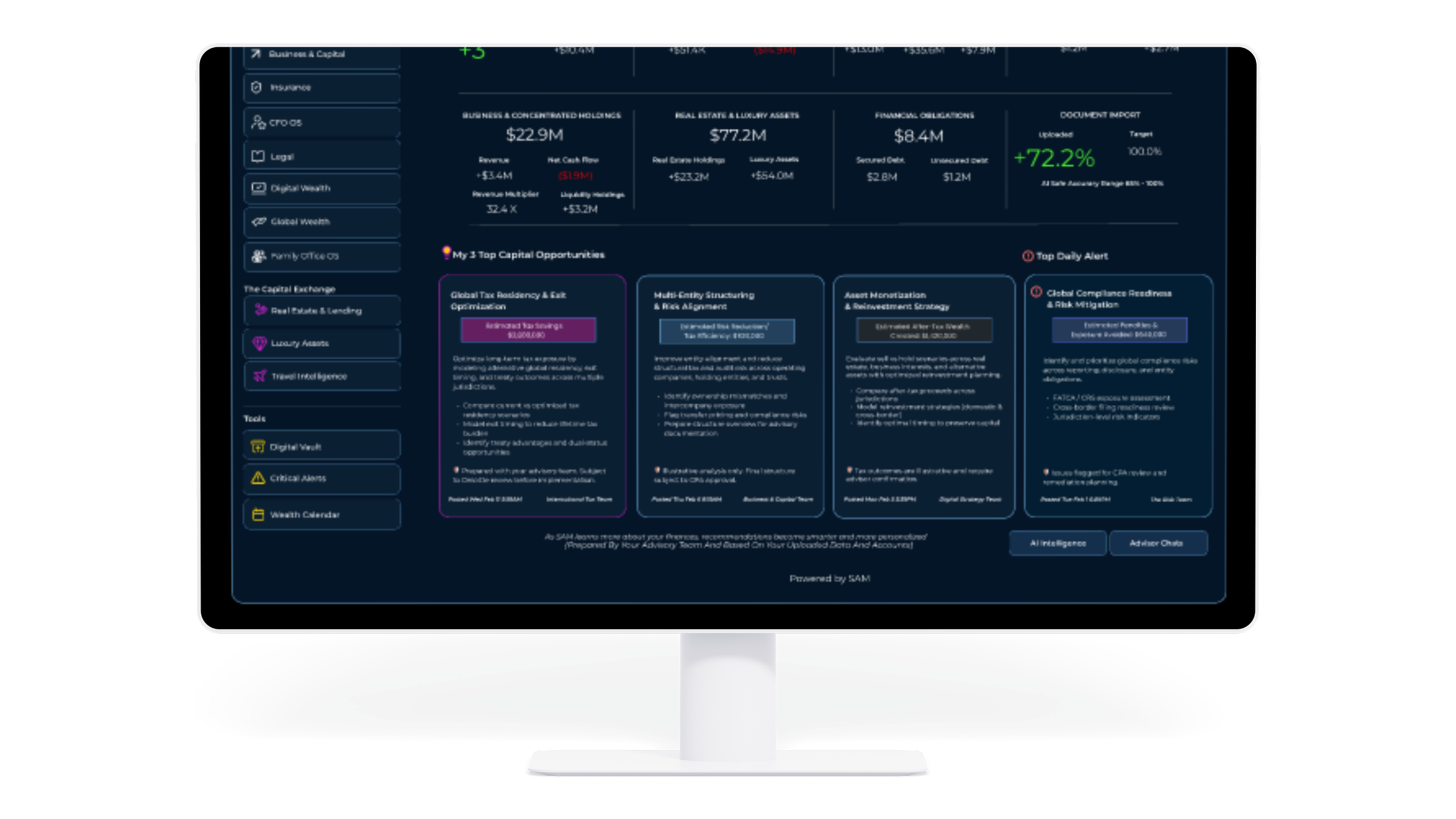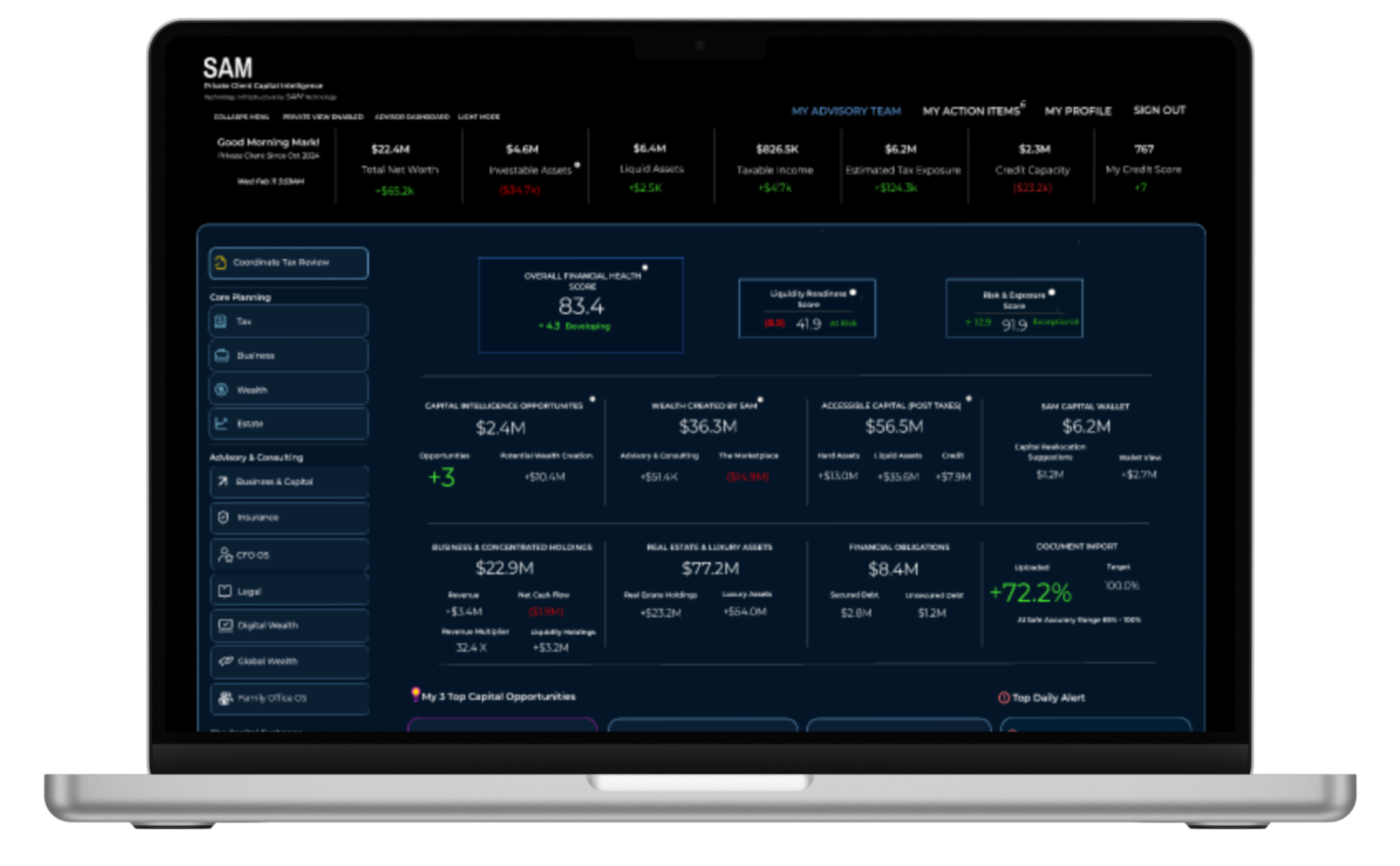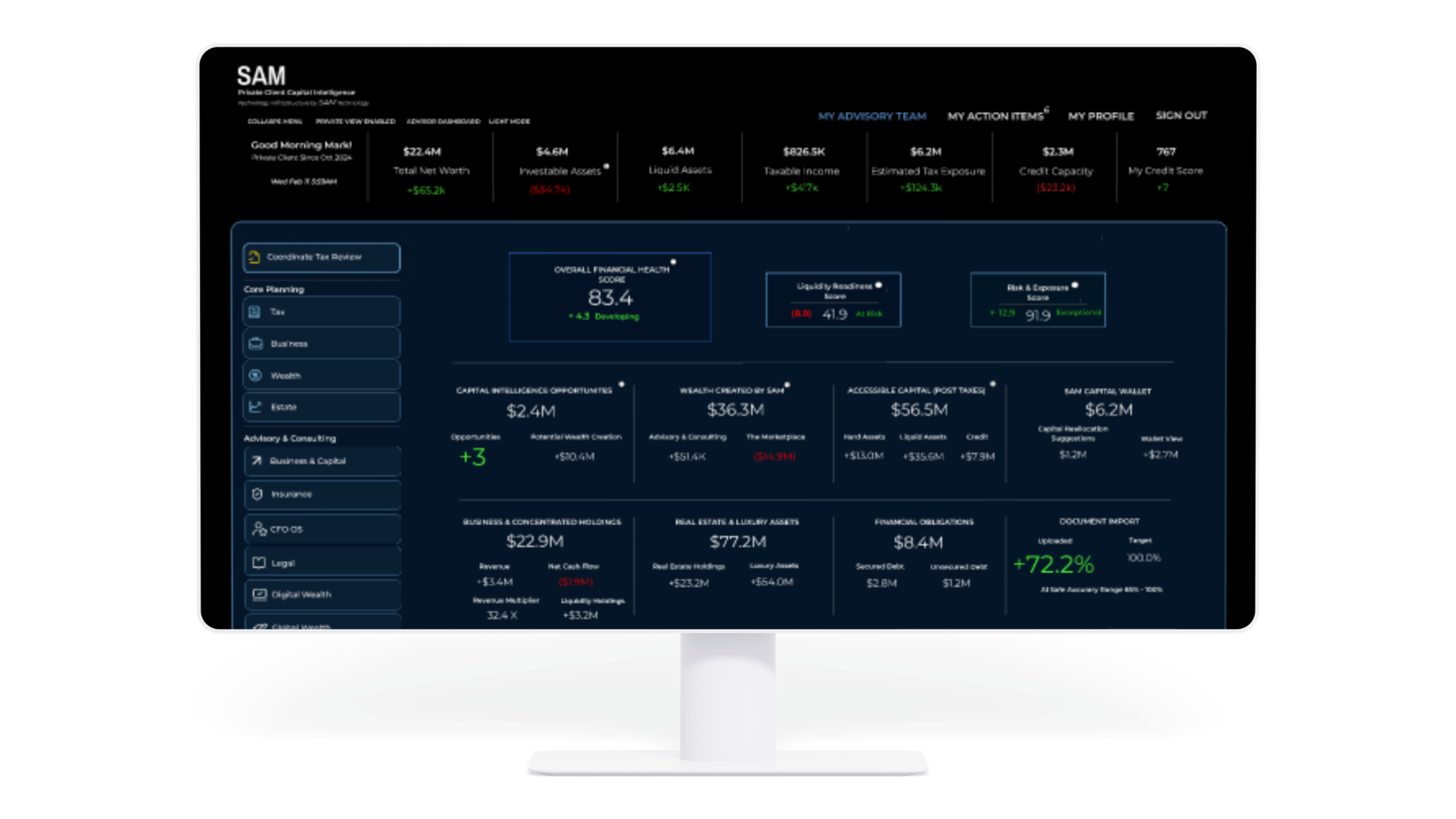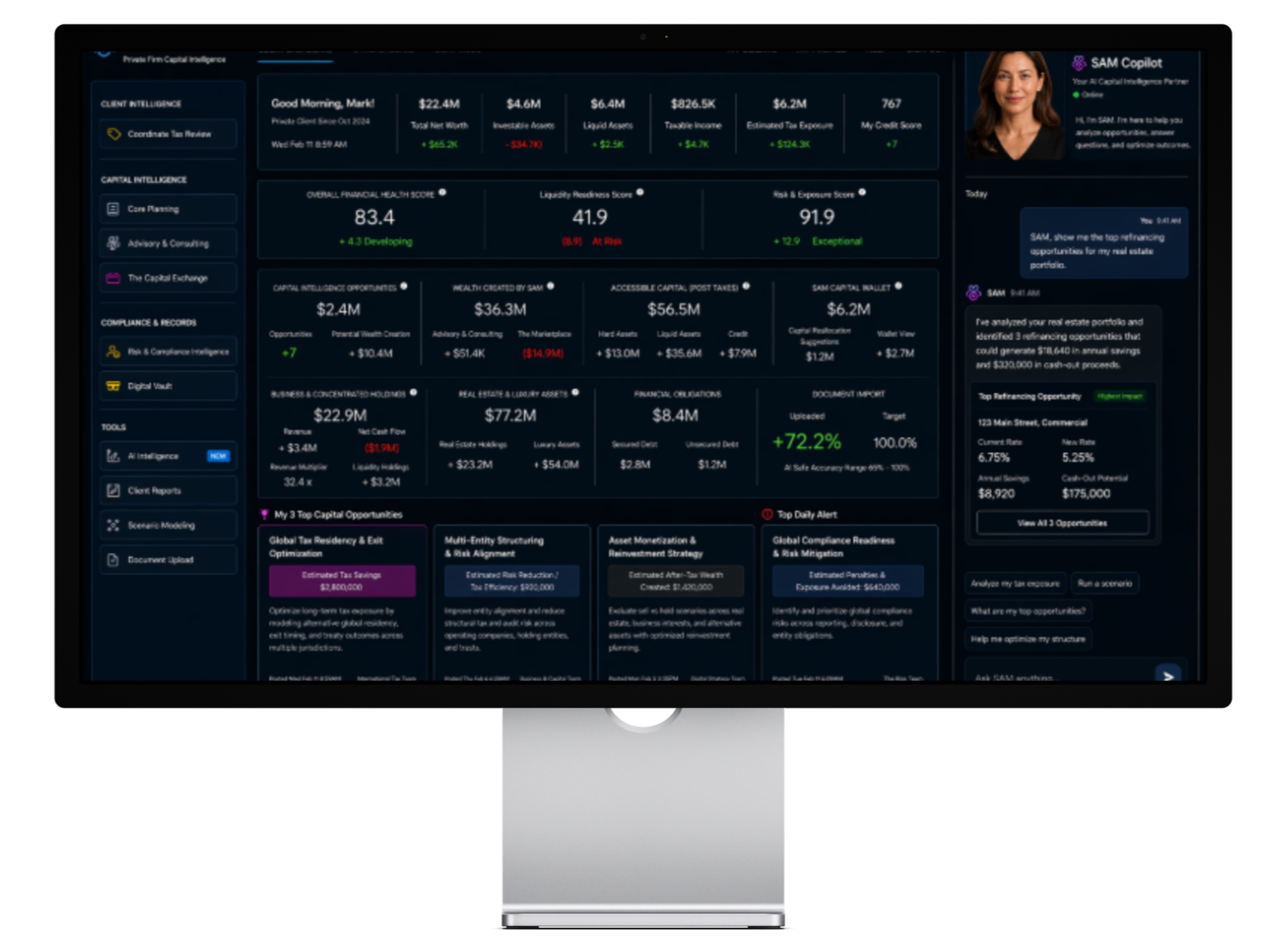 ✓ Unified intelligence across tax, wealth, lending, real estate, and alternative assets